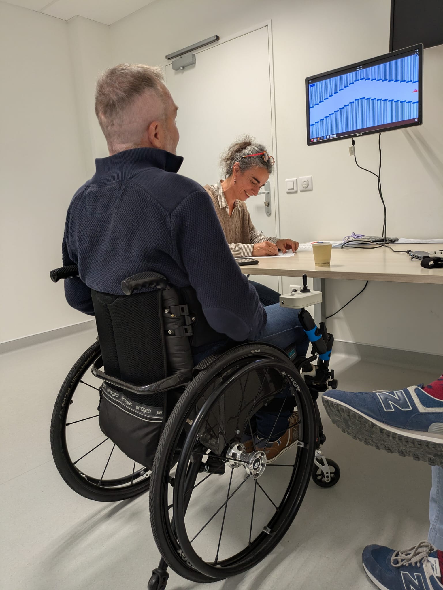 In the photo, Sébastien is using a joystick to interact with the software. Voice control was also evaluated.